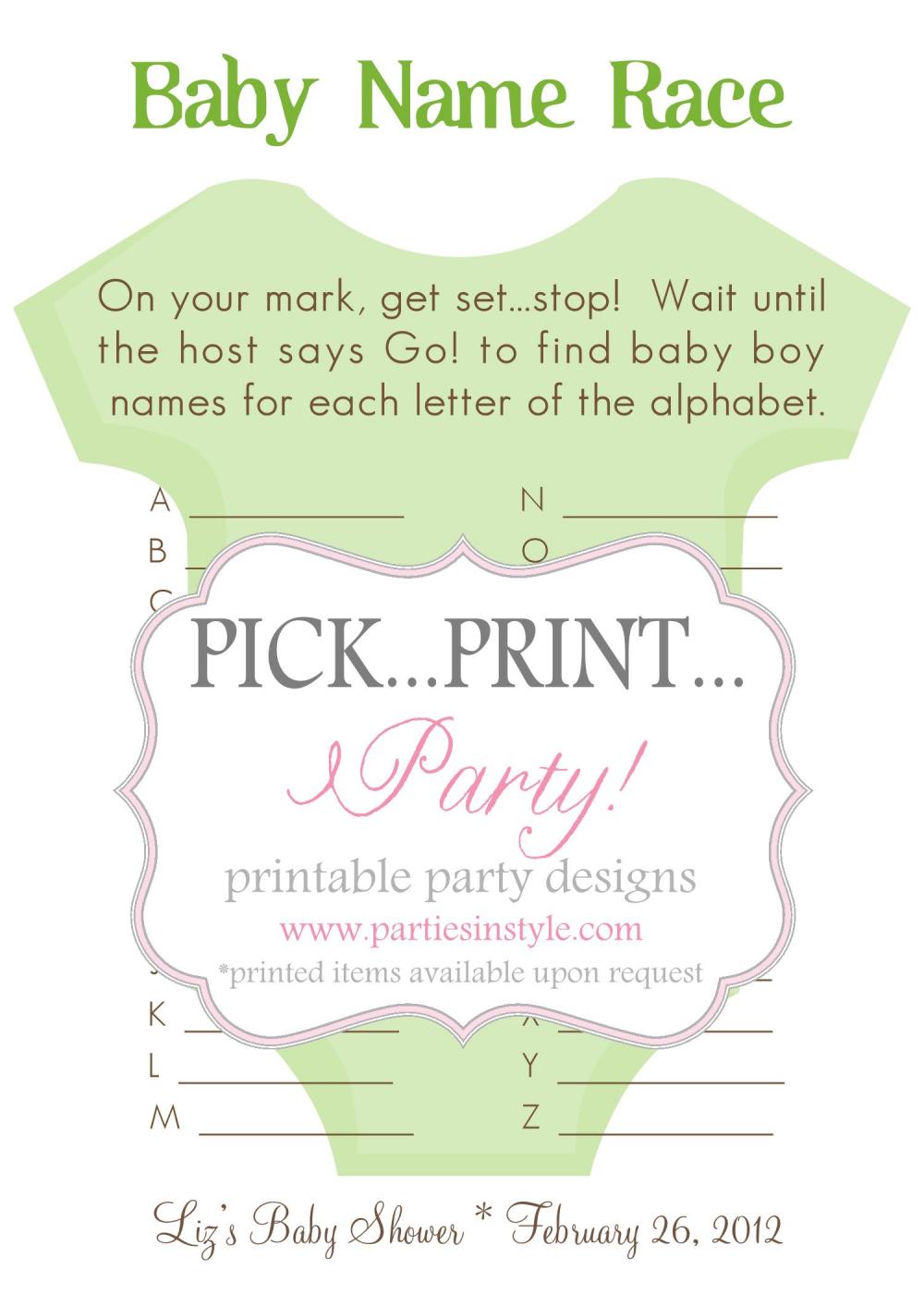 Alphabet Name Letters Baby Shower Invitation - Printable ... from i.pinimg.com Then organize a race in which each guest carries the egg "baby" on a spoon. Celebrate the important moments in life with baby announcements, baby shower invitations, 1st birthday cards from basic invite. Jun 11, 2021 · bleeding cool understands that in late july, goodenough college in london will be used to film a new dc comics superhero movie, under the code name baby shower. Oct 30, 2019 · ask your shower guests to decorate an egg to look like a baby, using paints, food coloring, or other decorations. Oct 31, 2016 · whether you need a baby shower gift for a boy or a girl, baby's greatness will be written in the stars with this personalized baby shower gift that speaks to astronomy lovers everywhere. After all, what's the point of playing if it isn't? They'll break the ice while getting guests that don't know each other to mingle. Jan 06, 2021 · baby shower games to break the ice.